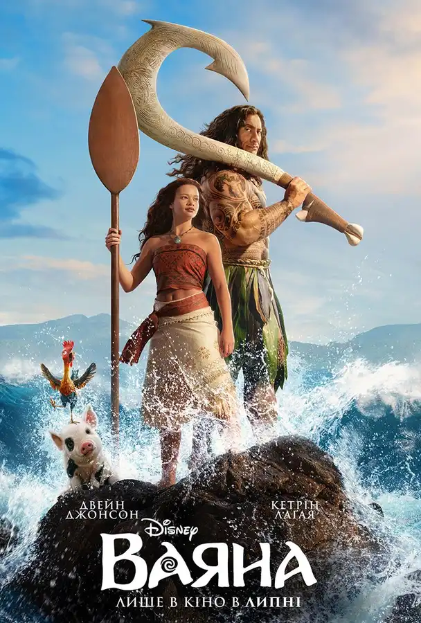 Сюжет:У лайв-екшн переосмисленні культової історії від Disney юна Ваяна відповідає на поклик Океану й уперше вирушає за межі рідного острова Мотонуї. Дівчина прагне повернути процвітання своєму народу, а її супутником у цій небезпечній подорожі стає легендарний напівбог Мауї. На них чекають величні острови, неспокійне море, племена Какамора, міфічні істоти та випробування, що змінять їх обох. Разом Моана й Мауї повинні знайти силу в собі та усвідомити, що справжня міць – у сміливості, покликанні та голосі власного серця.